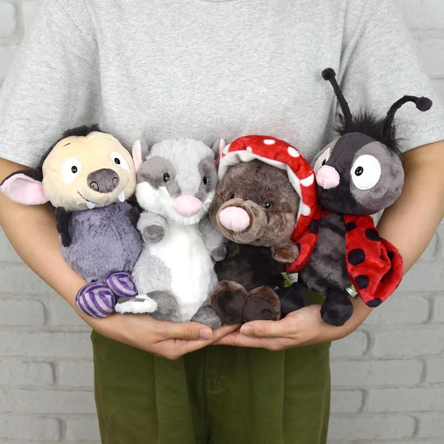 ある晴れた日の朝、テントウムシのレニーバグが空を散歩していると、モグラのモニモーレがいつものように穴を掘って、庭仕事をしていました。 モニモーレがお気に入りのシャベルで掘り進めていくと、暗い穴の中に、あたたかくてふわふわしたものを見つけました。 ふわぁ~と伸びをしたそれは、ヤマネの女の子 ドゥーラでした。ドゥーラはいつも昼間は眠っているのですが、 空から降りてきたレニーバグがとても愉快だったので、すっかり目が覚めてしまいました。 やがて日が暮れるとドゥーラは、とても美しい羽をもった気品のあるコウモリ ドラルナと出会いました。 ドゥーラは眠ることなんてすっかり忘れて、ドラルナと一緒にお庭でいろいろなものを発見して楽しみました。 ドラルナと一緒にいるうちに、いつの間にかドゥーラは魔法の力で空を飛んでいました。 それからというもの、ドゥーラはレニーバグと一緒に飛んだり、モニモーレと遊んだりして、お庭で楽しく過ごしました。 こちらは、フォレストフレンズ2022 モグラ22㎝ お座りタイプのぬいぐるみです。 このシリーズは、ペットボトルを再利用したリサイクルPET素材で作られていて、環境にやさしく、サスティナブルなシリーズです。 (リサイクルPET素材とは回収されたペットボトルを洗浄・粉砕して紡いだ糸で作られた生地。) 対象年齢6歳以上 ●小さな部品がある場合は、誤飲による窒息の危険がありますので、7歳未満のお子さまには与えないでください。 ●変形または、火災の原因となりますので、火気には近づけないでください。 ●破損、変形の恐れがありますので、乱暴に使用しないでください。 ●包装に使用されている部品とめ具、袋等は、お子さまの手の届かないところに処分してください。 ●金属製品を使用している商品は突起物など、とがっている部位もあります。取り扱いにご注意ください。