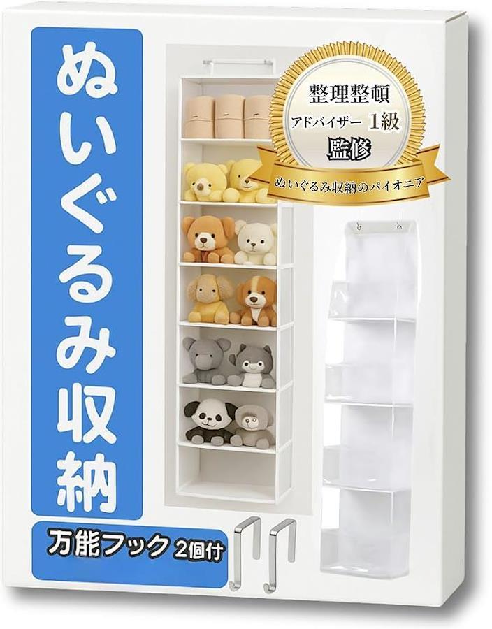 「aamonoのぬいぐるみ収納」は、 ドアにフックで簡単にかけるだけ で、 ぬいぐるみをかわいく収納できる優れもの。 簡易梱包にて出荷します、ご了承ください。