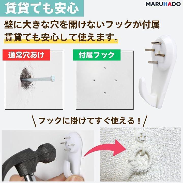 付属のフックは大きな穴を開けずに設置できるタイプなので、賃貸でも安心してお使いいただけます。
