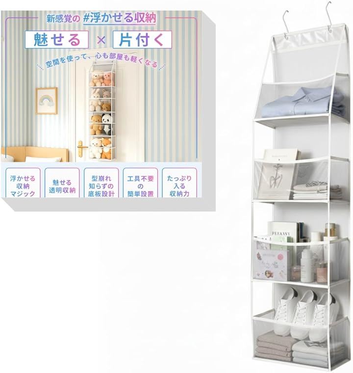 床置きゼロの浮かせる収納革命 - 床に置かない新発想で空中収納を実現。