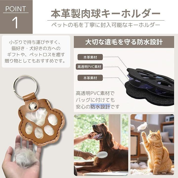 「犬猫グッズ・肉球キーホルダー」本革製の猫の肉球モチーフキーホルダーは、ペットの毛を丁寧に封入可能。