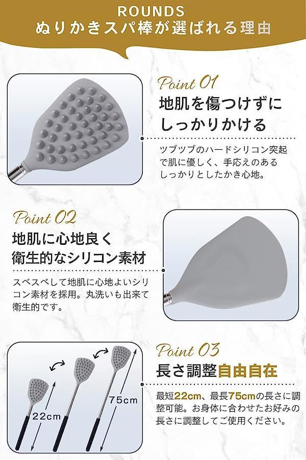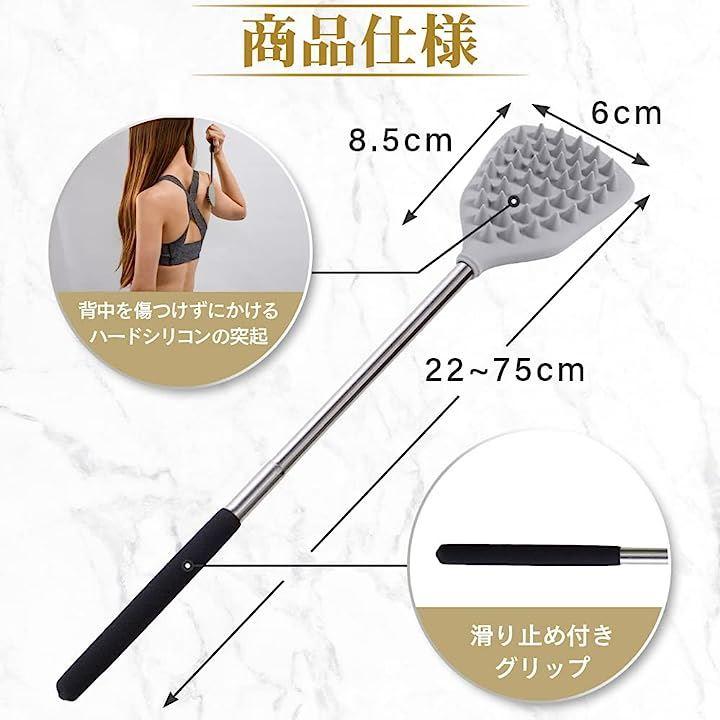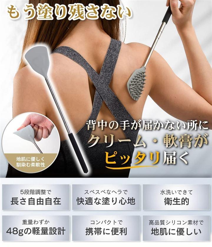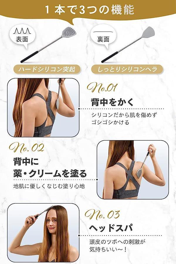 表面のシリコン突起は孫の手、ヘッドスパとして、裏面は背中に薬やクリーム 軟膏を塗る道具としてご使用いただけます。