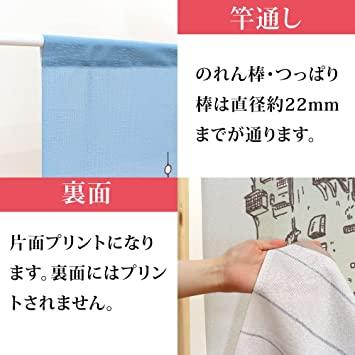 【仕様】割れ目のないのれんです。真ん中のカットラインに沿ってハサミで切り込みを入れることもできます。竿通し部分まで切らないようにご注意ください。直径約2.2cmまでのポール(棒)を通すことができます。 (※つっぱり棒をご使用の場合