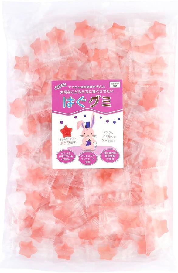原材料名:還元水飴(国内製造)、還元パラチノース、ゼラチン、植物油脂、粉末オブラート、澱粉/甘味料(キシリトール)、酸味料、香料、ブドウ果皮色素、光沢剤、(一部にゼラチン・大豆を含む)
