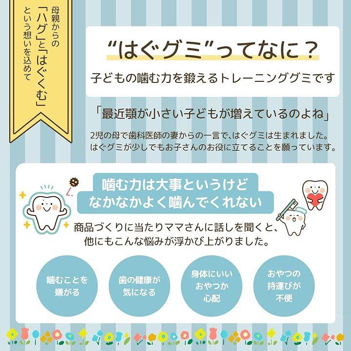 少し硬めに作られているグミなので、よく噛むトレーニングとして最適。