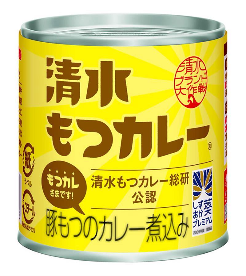清水発祥のもつカレー。静岡県の清水の居酒屋では、よく食べられる定番おつまみ「もつカレー」の味をそのまま缶詰にしました。「清水もつカレー総合研究所」との連動により、製品化した一品です。国産豚もつをだしを効かせたカレーソースで煮込み、お酒のおつまみに最適な製品に仕上げました。