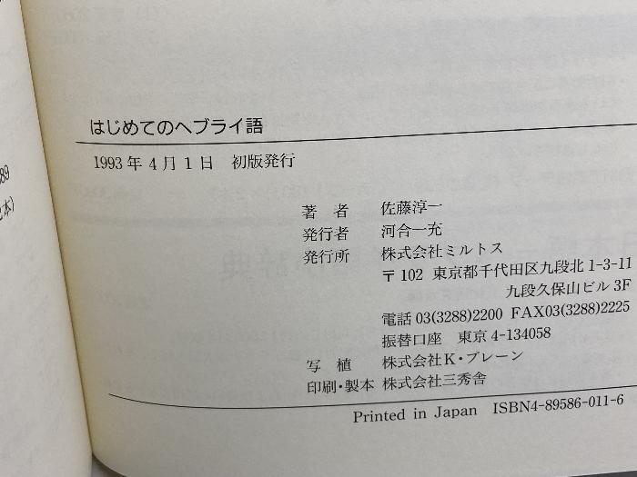 商品名:はじめてのヘブライ語 ミルトス 佐藤 淳一