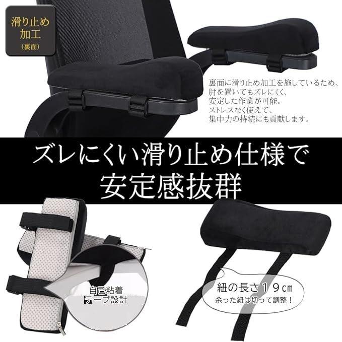 「工具不要で取り付け簡単」テープ式でオフィスチェアやゲーミングチェア、家庭用椅子など幅広い肘掛けに簡単に装着可能。