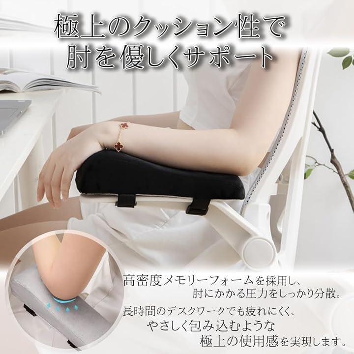 「極上のクッション性で肘を優しくサポート」高密度メモリーフォームを採用し、肘にかかる圧力をしっかり分散。