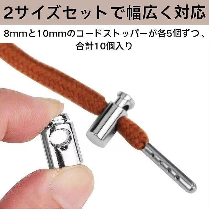 2サイズセットで幅広く対応。 8mmと10mmのコードストッパーが各5個ずつ、合計10個入り。