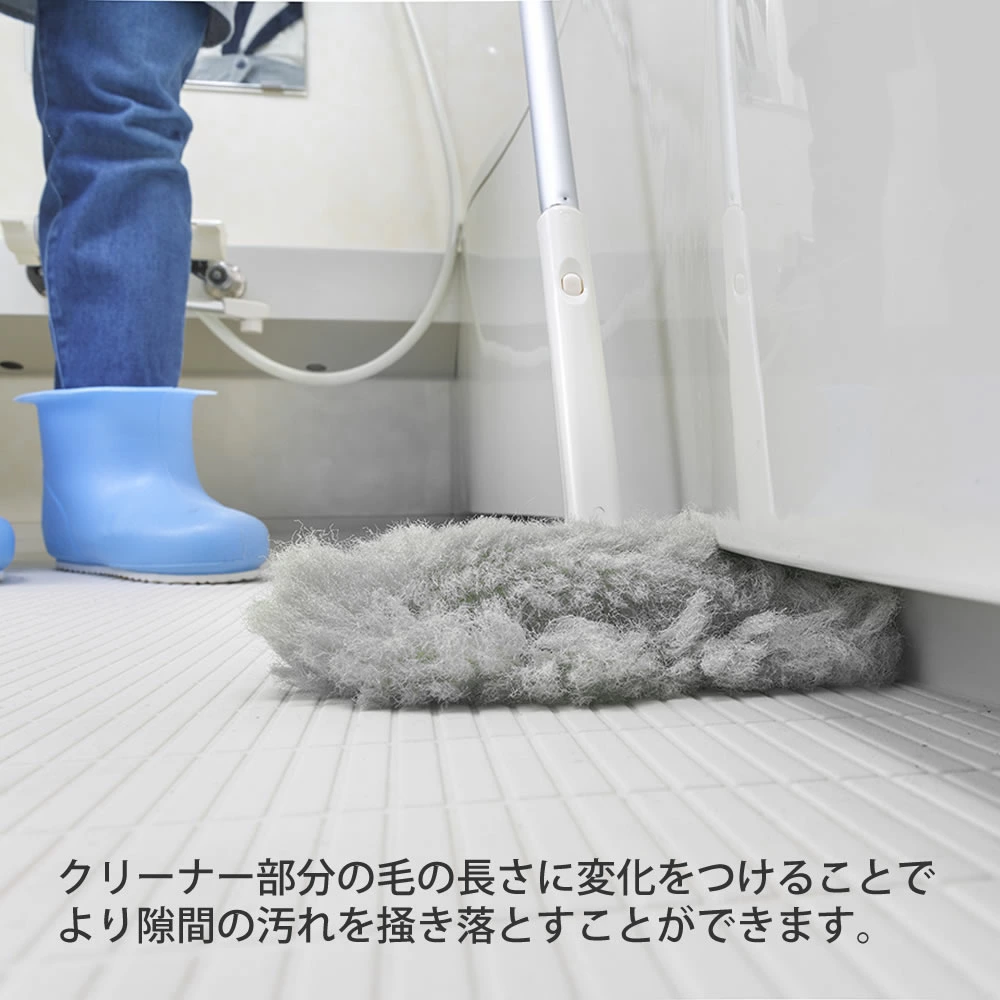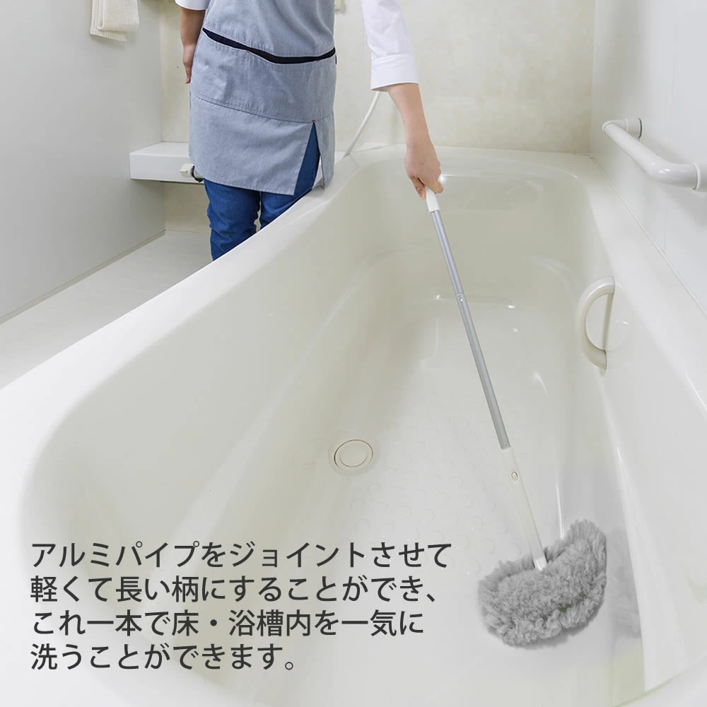 アルミパイプをジョイントさせることで、軽くて長い柄にすることができ、これ一本で床・浴槽内を一気に洗うことができます。
