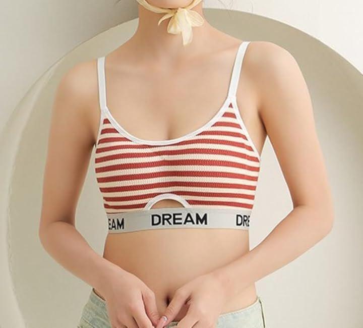 シンプルながら、ニット地がかわいい、ボーダー柄スポーツブラ。