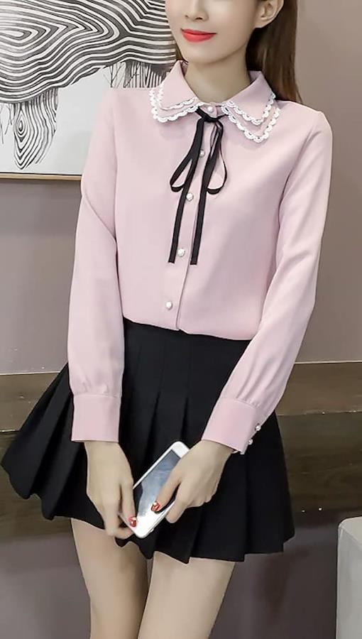 色: 2枚襟・ピンク/ブラックリボン サイズ: L |