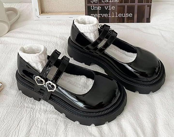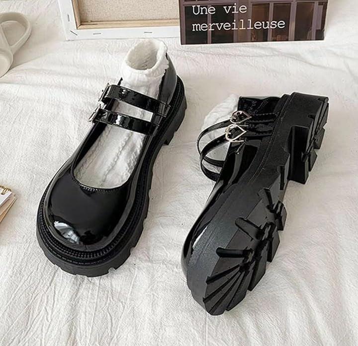 Pureribon Large size with ribbon Thick sole Round toe Mary Jane pumps Lolita shoes