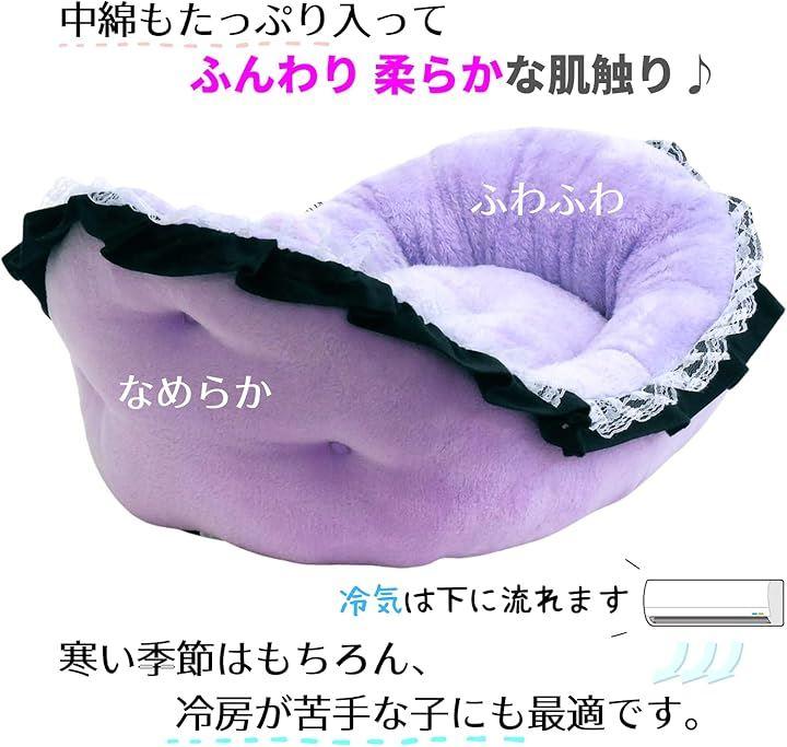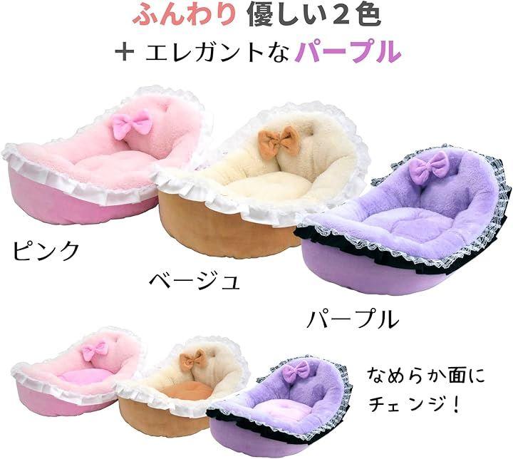 やわらかなパステルカラーに、リボンやフリル・レースなどをあしらった、とってもラブリーなペットベッドです。