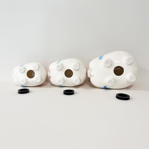 日本製、瀬戸焼の貯金箱です。 熟練の職人が作る、ハンドメイド品で、 昭和40年頃から売られている、 ロングセラー商品です。 小、中、大の3サイズ展開で、 全サイズ500円玉まで対応可能。 底にゴムパッキンが付いているので、 お金を取り出す際はトンカチで 割る必要はありません。 昔ながらの可愛いデザインは、 老若男女問わず、人気があります。 箱付きなので、プレゼントにもおすすめです。 ●商品仕様● ◆サイズ:約幅14×奥行9×高さ10cm ◆材質:陶器(瀬戸焼) ◆重量:約245g ◆生産国:日本 ◆メーカー:クラフト工房虹(平八園製陶所)