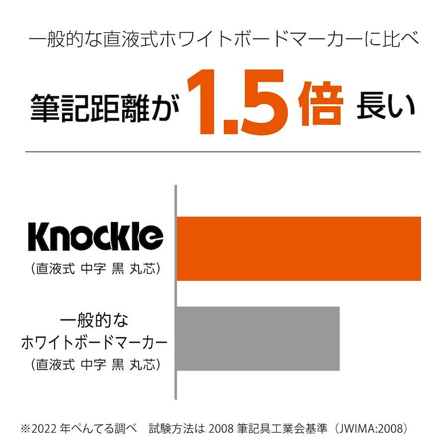 鮮やかなカラーのキャップ式ホワイドボードマーカー。インキが薄くなったら、ペン後ろのノックをプッシュ。インキが出て濃さが戻りまた鮮やかに書ける。