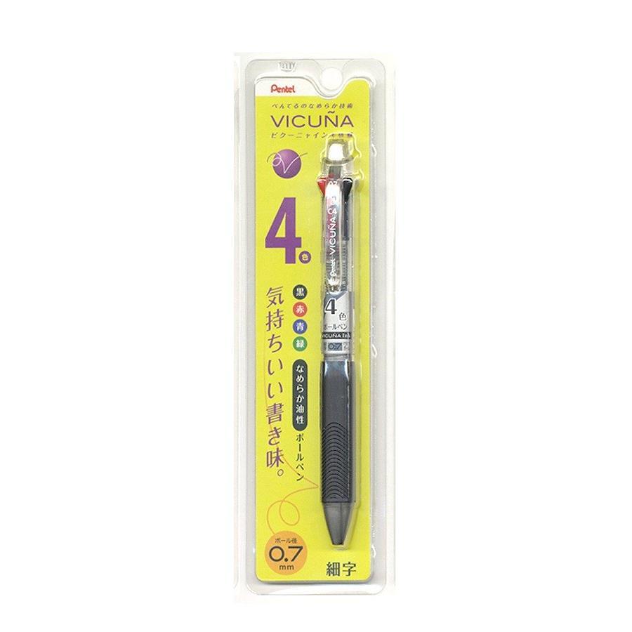 ●なめらかインキの4色ボールペン(黒・赤・青・緑)〈br〉●ボール径:0.7mm〈br〉●ぺんてるのなめらか技術・ビクーニャインキ搭載〈br〉・書いた瞬間を軽やかにする"潤滑剤"〈br〉・どこまでも書き続けたくなる"極めて低いインキ粘度"〈br〉・筆跡があざやかに仕上がる"着色剤"