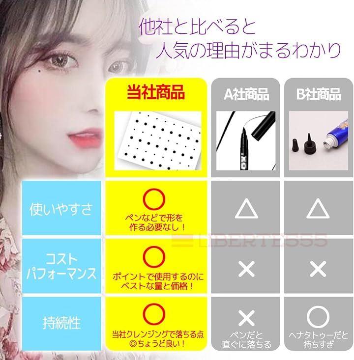 落ちたり滲んだりすること無く簡単にお好きな部分にホクロを付けられます。