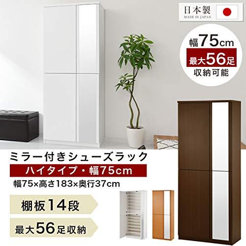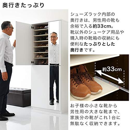 sbm075020-wh【材質】本体/プリント化粧板、可動棚/PVC 【耐荷重】棚板約7kg、天板約10kg(当社調べ) 【最大56足収納可能】 【可動棚12枚】 【ワンプッシュ式扉】 【ミラー付き】【転倒防止金具付き】 【日本製】 【カラー】ナチュラル、ホワイト、ダークブラウン 【背面化粧】無し ※2019年1月9日仕様変更しました。(扉・側板・梱包サイズ・梱包重量の変更) 【お客様にて組み立て】※組立方によっては、完成した商品サイズに多少の誤差が発生する場合がございます。(単位:約mm) ※詳細な商品サイズは画像一覧にございます。【商品外寸】(約)幅750×奥行368×高さ1825 【商品重量】約36.8kg【梱包サイズ1】幅895×奥行491×高さ189 【梱包重量1】約17.7kg 【梱包サイズ2】幅970×奥行388×高さ214 【梱包重量2】約22kg 【個口数】2当店人気のシューズボックスが生まれ変わりました!奥行きを広く、可動棚の高さ調節が細かく出来るようになり、お客様のお持ちの靴の大きさに細かく対応します♪可動棚にはPVC素材を採用し、利用しているうちに汚れてきても丸洗いが可能なので、いつでも清潔な状態を保っていただけます。足元まで写せるミラー付きで、お出かけ前のチェックもOK!!ぼん家具はインターネット通販で2004年より運営している和歌山の家具通販専門店です。日本の住宅に合わせたインテリア家具を中心に、実用的でデザイン性も併せ持つ商品を提案しております。インターネット販売の実績と知識があり、品質はもちろんのことお客様対応にもしっかり活かします。新商品も年に150アイテム以上をご提案いたしており、雑貨からオフィス家具まで幅広いラインナップがございます。最新家具をぜひご覧ください。