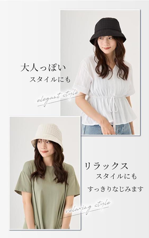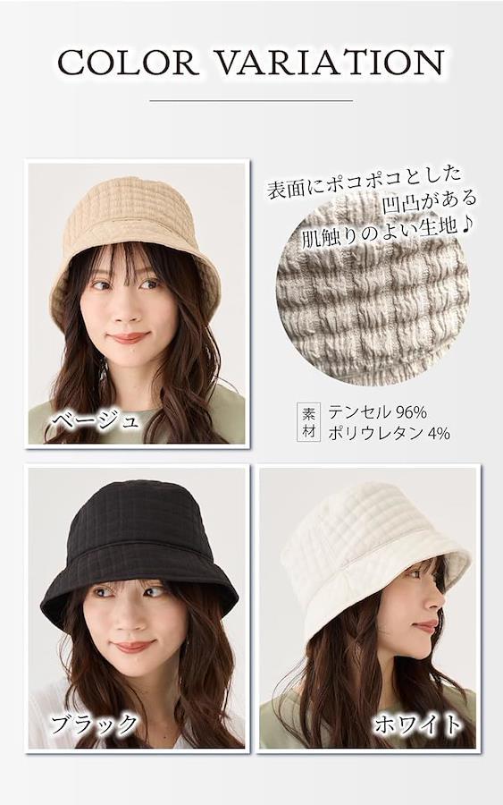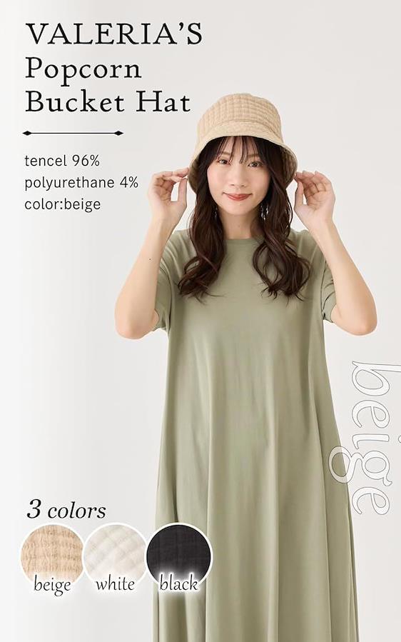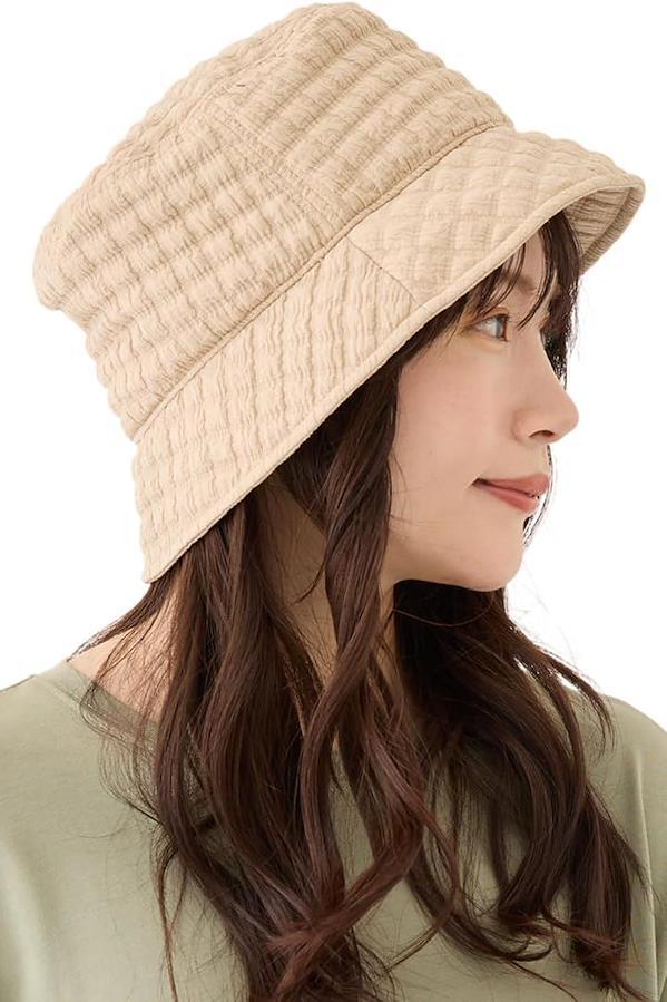 チェック柄のような風合いのポップコーン生地を使用した、トレンドのバケットハット。