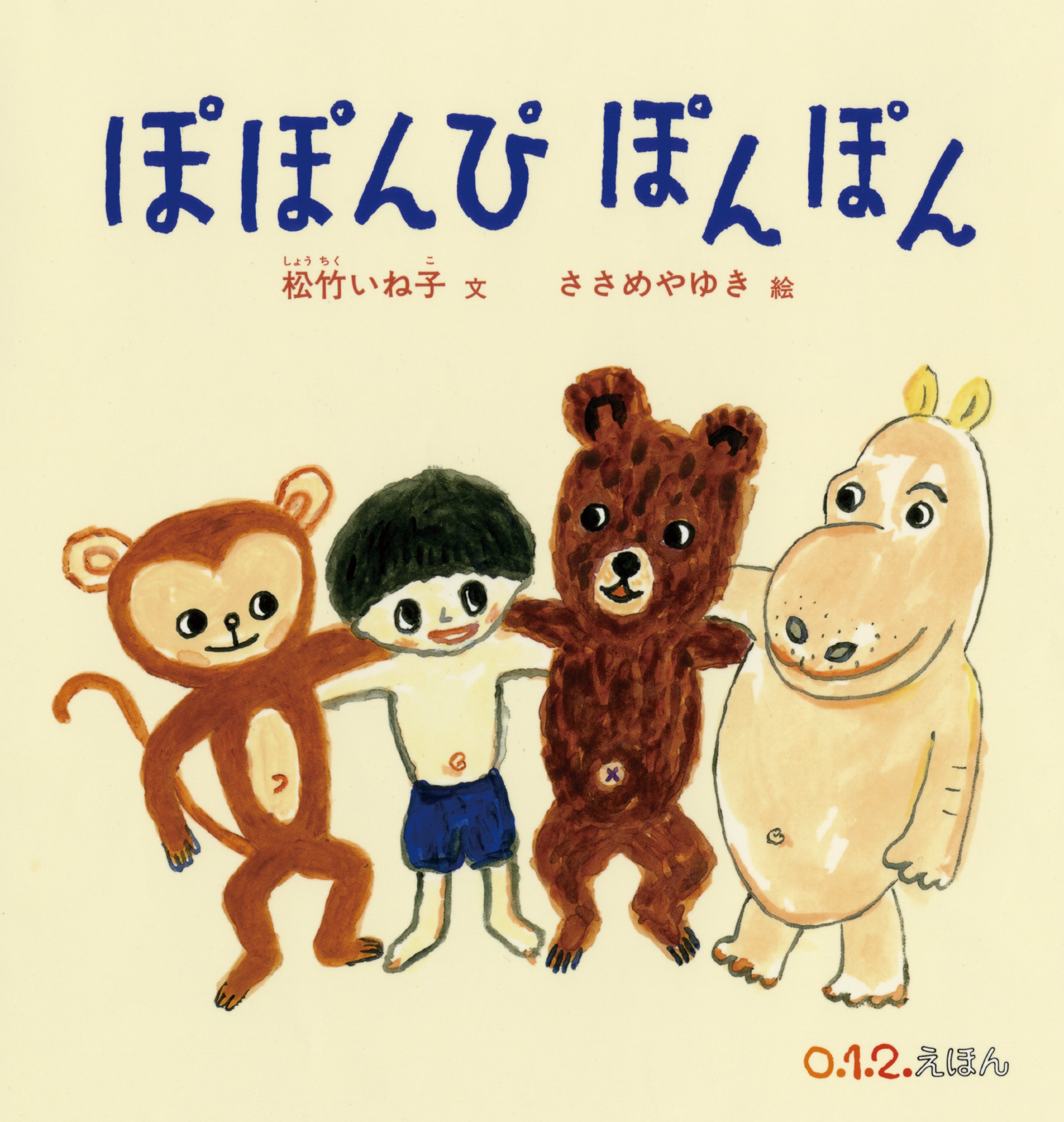 「たろうくんのおへそはどーこ?」。たろうくんがシャツをめくりあげると、ほら、"ぽんぽん"のまん中にありました。おへそは子どもにとって、なんとも不思議な存在です。だって自分の体の中心に、なぜかへこんだ(でっぱった?)ところがあるのです。くまさんも、かばさんも、おさるさんも、みんな一緒です。「○○ちゃんのおへそはどーこ?」と、親子でやりとりを楽しんでみてください。