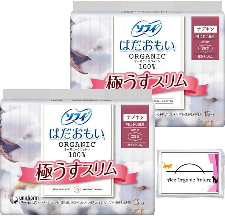 ・羽つき 23cm 15枚x2個 合計30枚 ・「まとめ買い」ソフィ はだおもい オーガニックコットン 極うすスリム 特に多い昼用 羽つき 23cm 15枚x2個セット