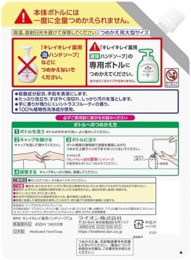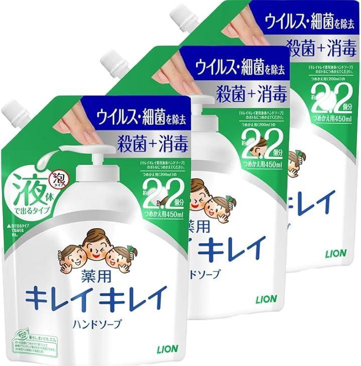 ・「まとめ買い」 キレイキレイ 薬用液体 ハンドソープ 詰め替え 450mLx3個 2.2倍 大容量
