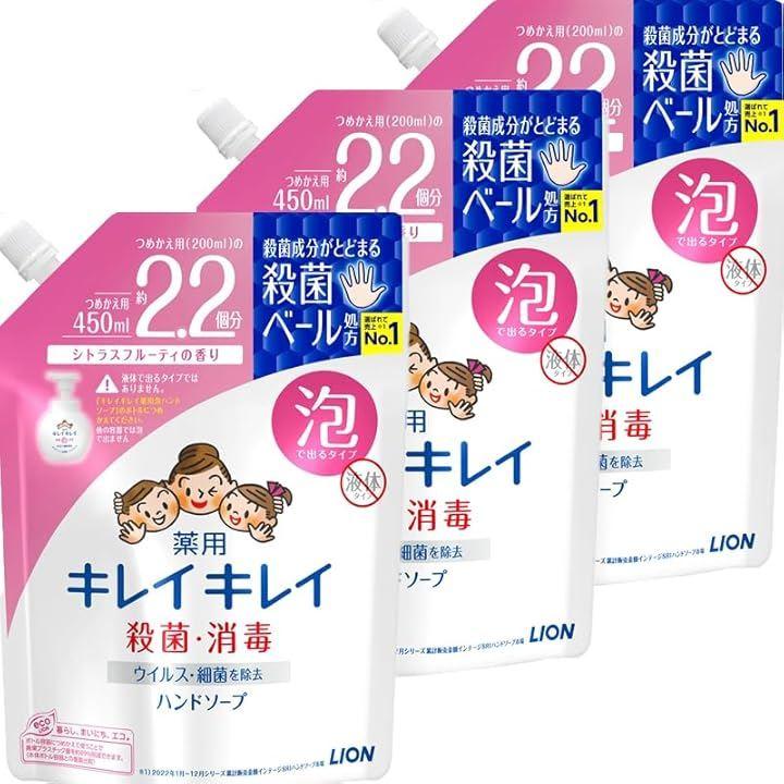 「まとめ買い」 キレイキレイ 薬用 泡ハンドソープ シトラスフルーティの香り 詰め替え 450mLx3個 2.2倍 大容量