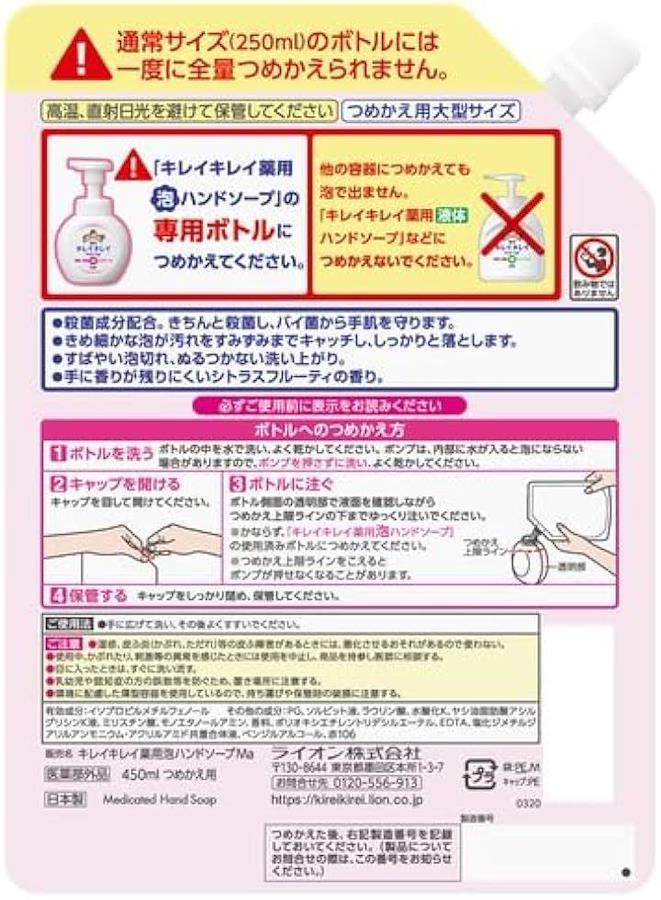 Bulk Purchase Medicated Foaming Hand Soap Citrus Fruity Scent Refill 450mL x 3 Pieces 2.2x Large Capacity