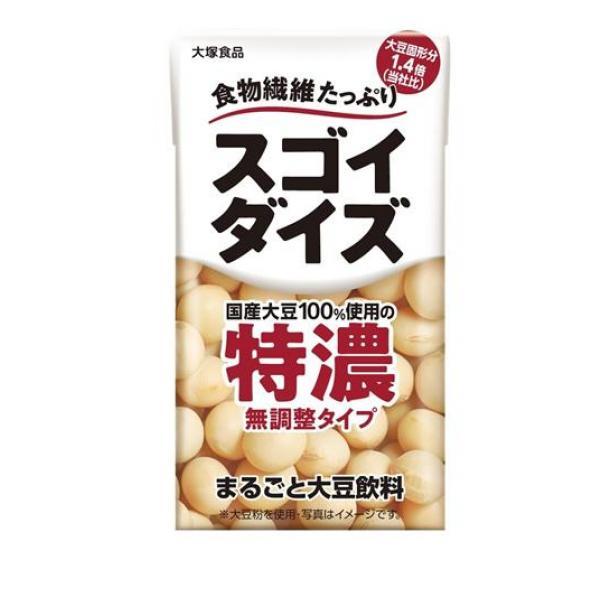 製品の特徴●大塚食品 スゴイダイズ 無調整タイプ特濃●食物繊維たっぷりのまるごと大豆飲料。●独自の製法により、「まるごと」なのにクリーミーな口当たり。●大豆固形分14%の特濃。国産大豆を100%使用した、少量でも満足感ある飲みごたえ。食物繊維は1パック125mL当たり3.3g。※大豆粉を使用(うす皮は除いています)●常温保存可能品