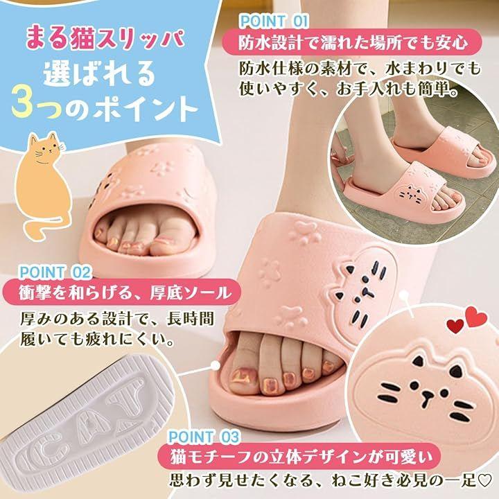 Round Cat Slippers, Ultra Lightweight, 82g per shoe, One Size Fits All, Indoor/Outdoor Use, Bath, Balcony, Kitchen