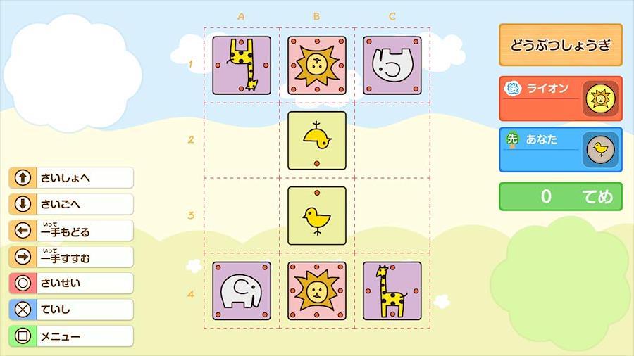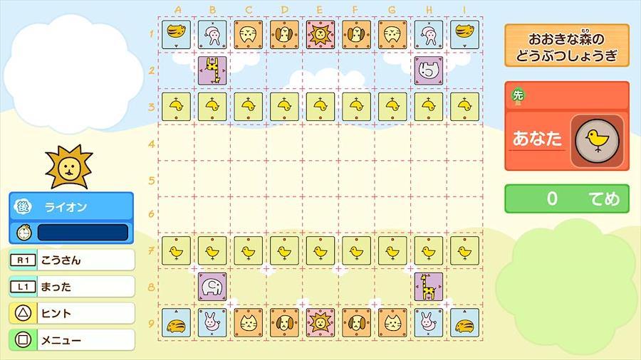 3つのどうぶつしょうぎでたのしくステップアップ! これ1本で将棋が覚えられる!かわいい見た目と、シンプルなルールで大人気の「どうぶつしょうぎ」が「ごろごろどうぶつしょうぎ」と「おおきな森のどうぶつしょうぎ」と一つになってPlayStation4に登場! どうぶつしょうぎの発案者でもある現役女流棋士 北尾まどか二段監修のチュートリアルも搭載し、お子様でも楽しく将棋が覚えられます。