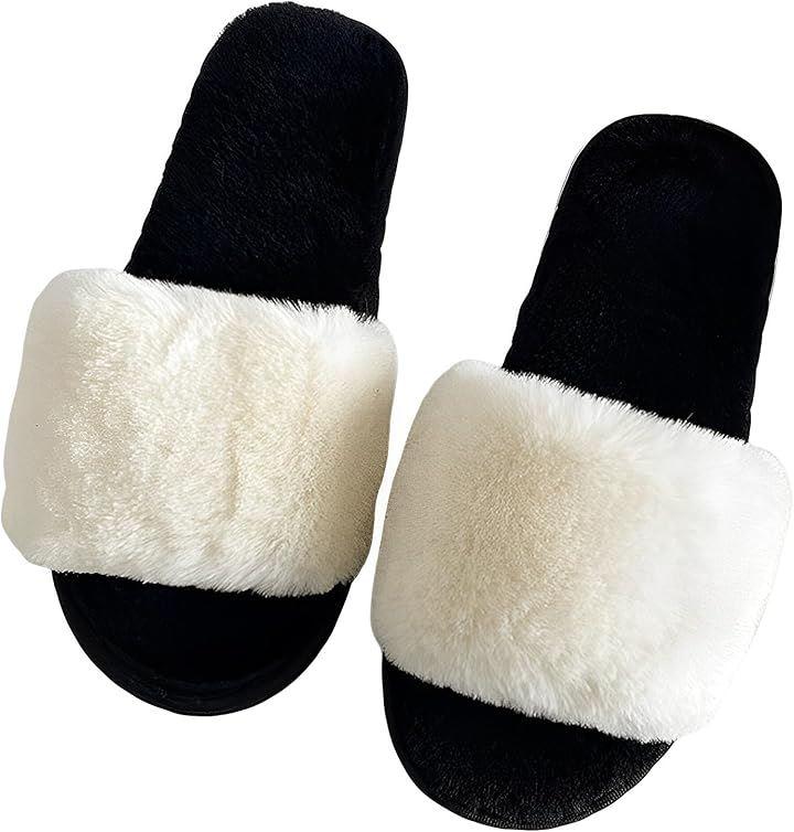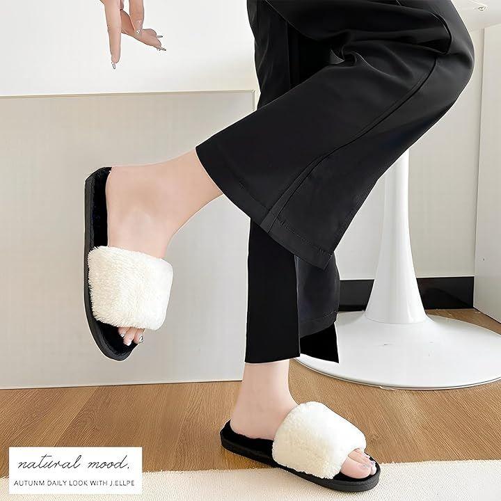 「ふわふわのファーが大人可愛い」レディース、フェイクファースリッパ。