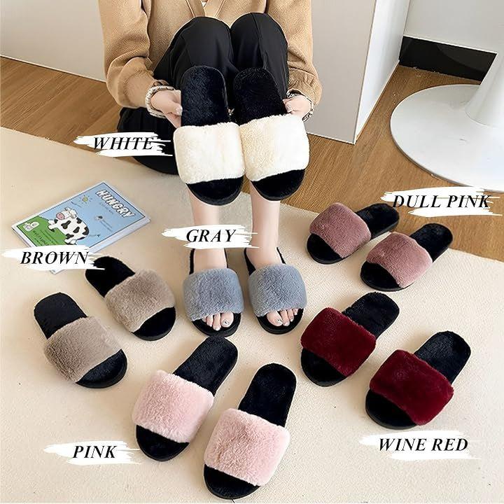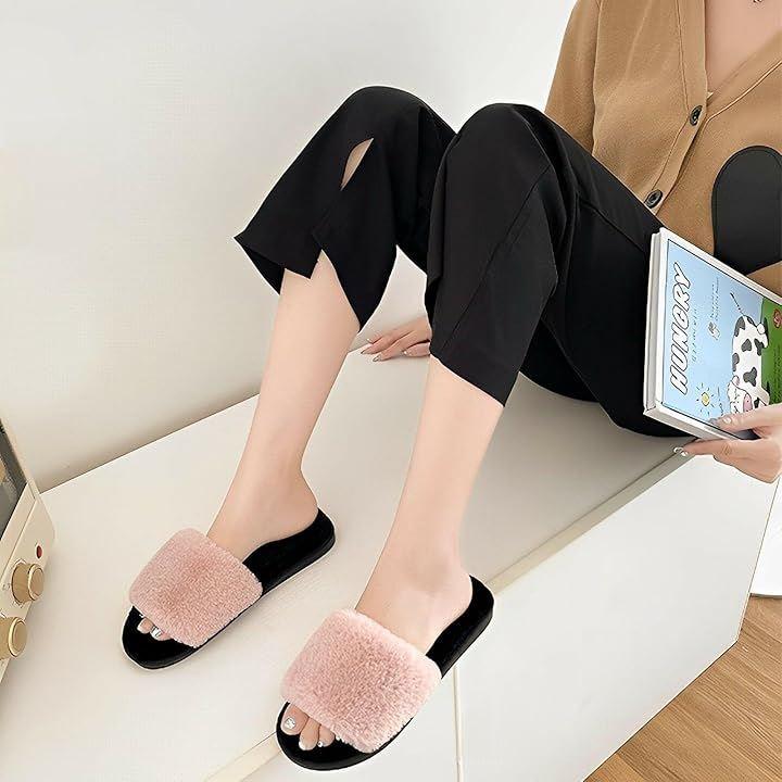 「ふわふわのファーが大人可愛い」レディース、フェイクファースリッパ。