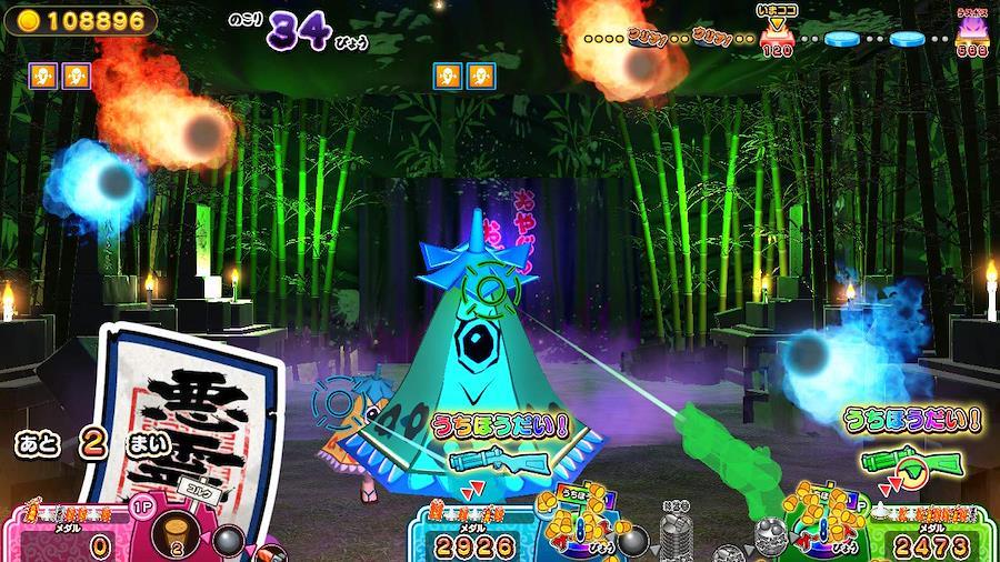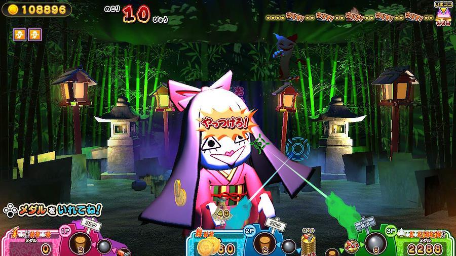 また、おばけが潜んでいる景品を撃ち落とすと、おばけが出現して襲ってくるので、おばけを撃って退治します。