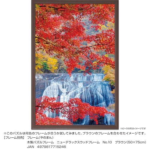 日本三名瀑のひとつ、茨城県大子町の袋田の滝。大岩壁を四段に流れ落ちることから「四度(よど)の滝」とも呼ばれる。また、かつて西行法師が訪れた際「この滝は四季に一度ずつ来てみなければ、真の風趣は味わえない」と絶賛したことに由来するという説もある。色鮮やかな紅葉と共に秋の名瀑を写した1枚。●やのまん製パズルフレームおすすめサイズN.10 1500-1006(ブラウン)