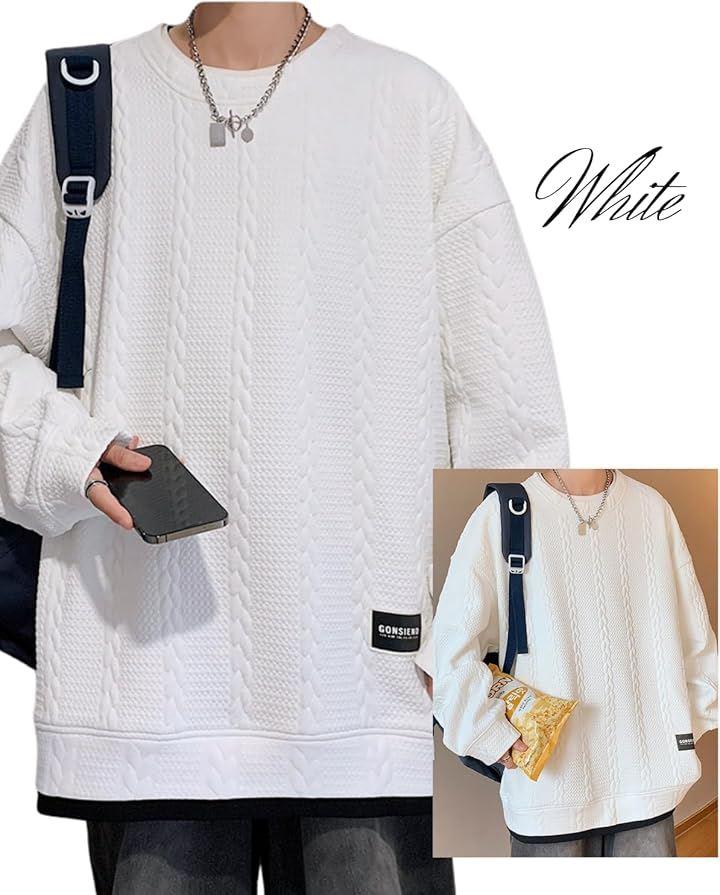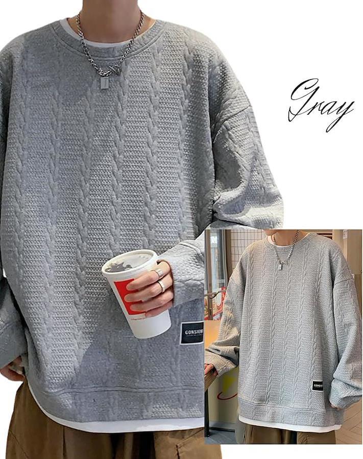「ゆったりシルエットで快適な着心地」このゆったりトレーナーは、メンズ向けに作られたビッグシルエットで、重ね着風のデザインが特徴です。