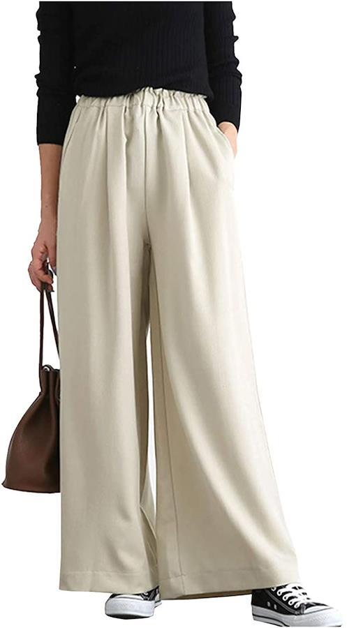 ・すらりと見える縦長のワイドパンツです。