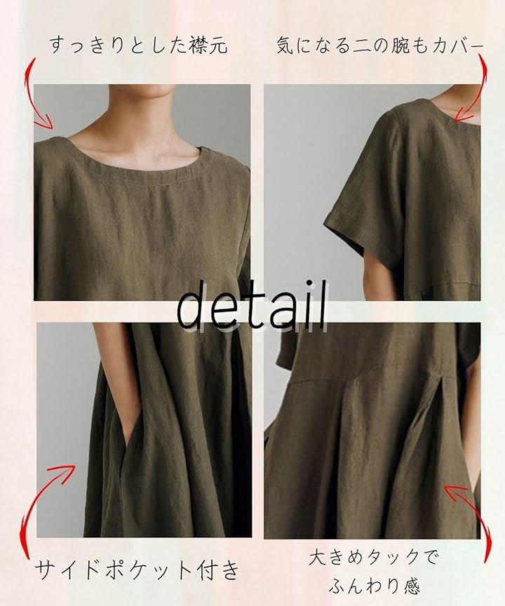 ゆったりとしたシルエットが可愛いナチュラルワンピース 胸下からの切り替えしは大きめタックでふんわりとしたロング丈で体型カバーも叶います 綿麻混合生地なので暑い時期もさらりと涼しく着られます