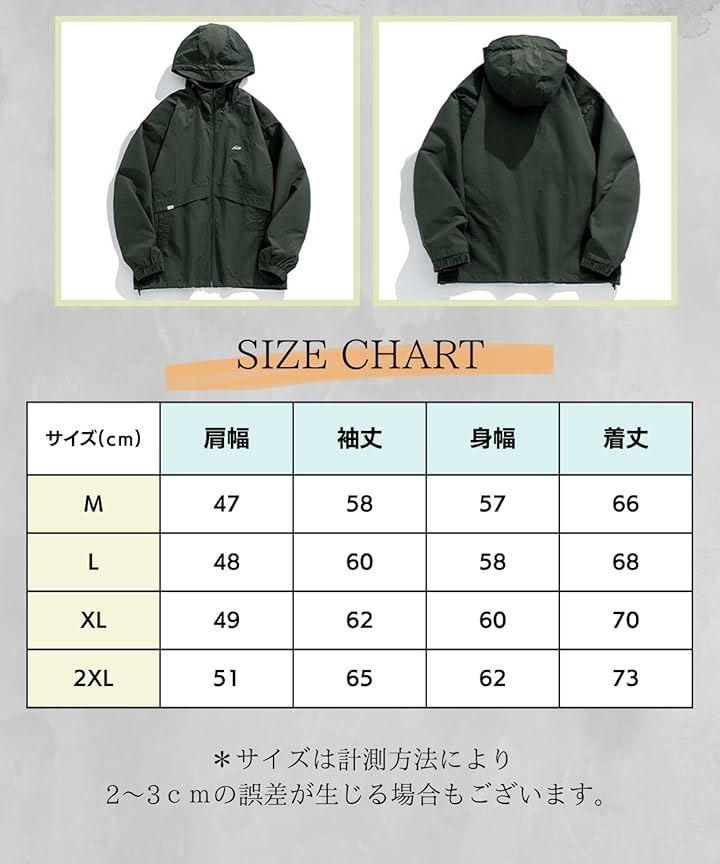 「素材」ポリエステル 「カラー」ブラック・ブラウン・グリーン・ライトグリーン「サイズ」M・L・XL・2XL「M」肩幅47/袖丈58/バスト57/丈66 「L」肩幅48/袖丈60/バスト58/丈68「XL」肩幅49/袖丈62バスト60/丈70「2XL」肩幅51/袖丈65/バスト62/丈73 *サイズは計測方法により2~3cmの誤差が生じる場合もございます。