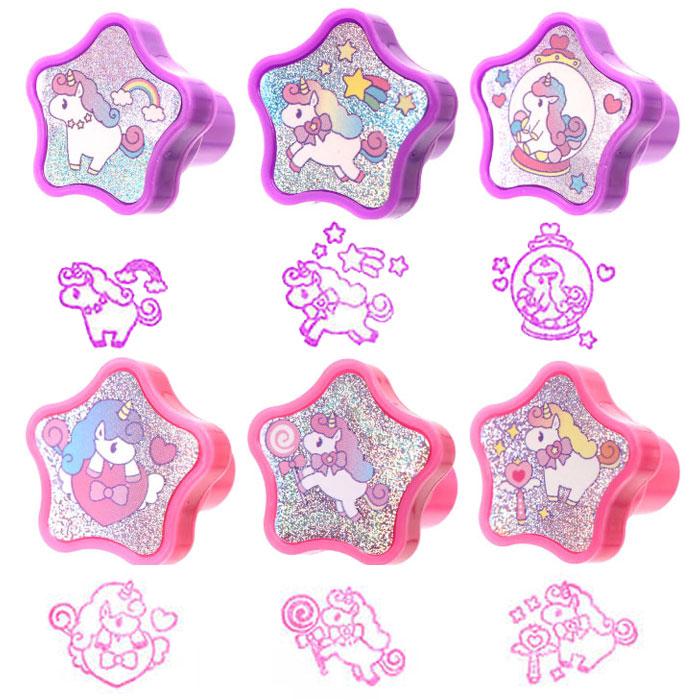 色々な絵柄のユニコーンのスタンプを、ノートやお手紙などに押して遊んでね。