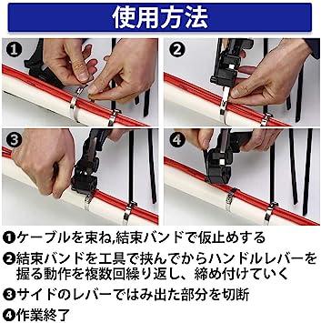 寸法:H210mm;重量:約590g商品内容:結束工具SS-01x1点、取扱説明書適合メタルバンド幅:4.5~12mm以内適合メタルバンド厚さ:0.3mm以下操作方法:引き締め調整は、トリガーを引きながら行い、最後にタイカット用レバーを押し上げて、余分なタイを切断します。