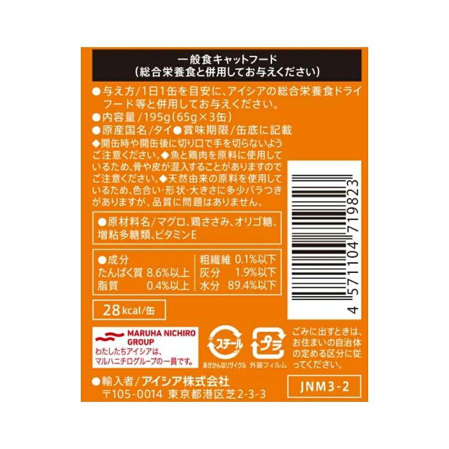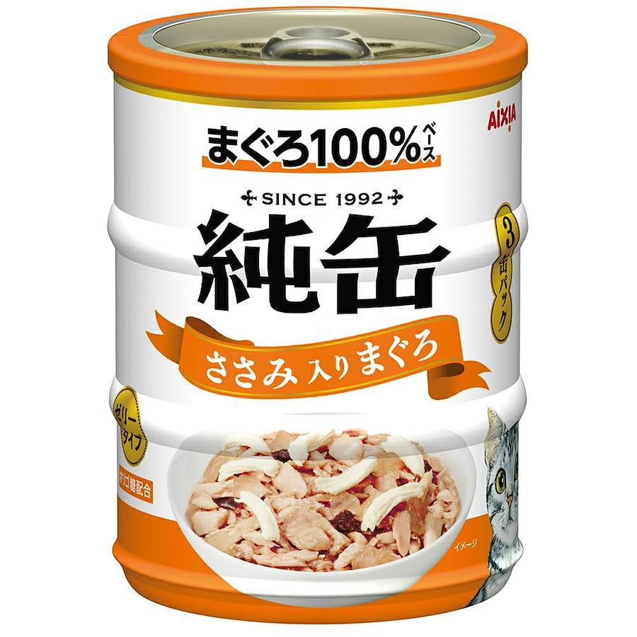 純缶ミニ3P ささみ入りまぐろ 195G。