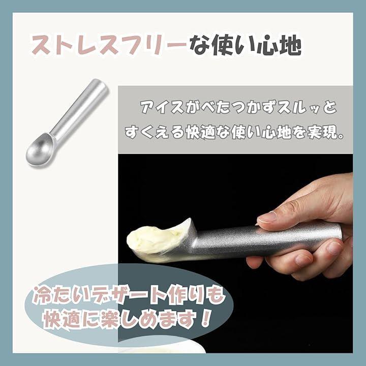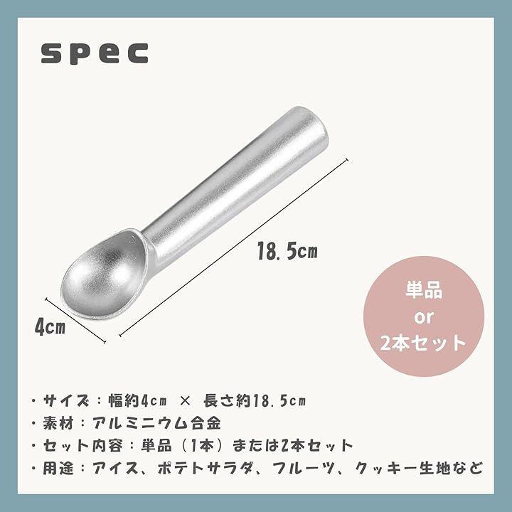 「商品詳細」 ・サイズ:幅約4cm x 長さ約18.5cm ・素材:アルミニウム合金 ・セット内容:単品(1本)または2本セット ・用途:アイス、ポテトサラダ、フルーツ、クッキー生地など
