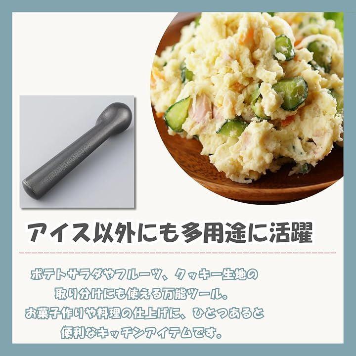 「アイス以外にも多用途に活躍」 ポテトサラダやフルーツ、クッキー生地の取り分けにも使える万能ツール。