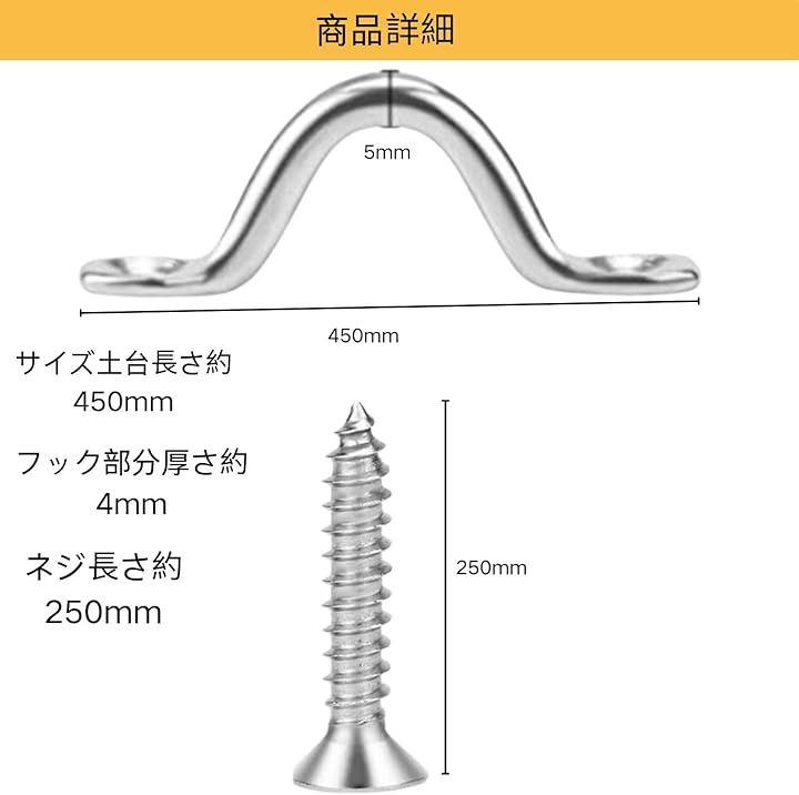 サイズ土台長さ約450mm・フック部分厚さ約4mm・ネジ長さ約250mm