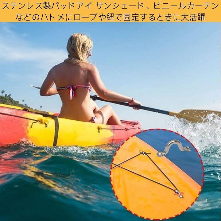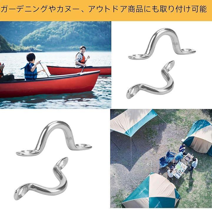ステンレス製パッドアイ サンシェード、ビニールカーテンなどのハトメにロープや紐で固定するときに大活躍。ガーデニングやカヌー、アウトドア商品にも取り付け可能。カラビナを仕様して固定する際にも最適なコの字の留め具です