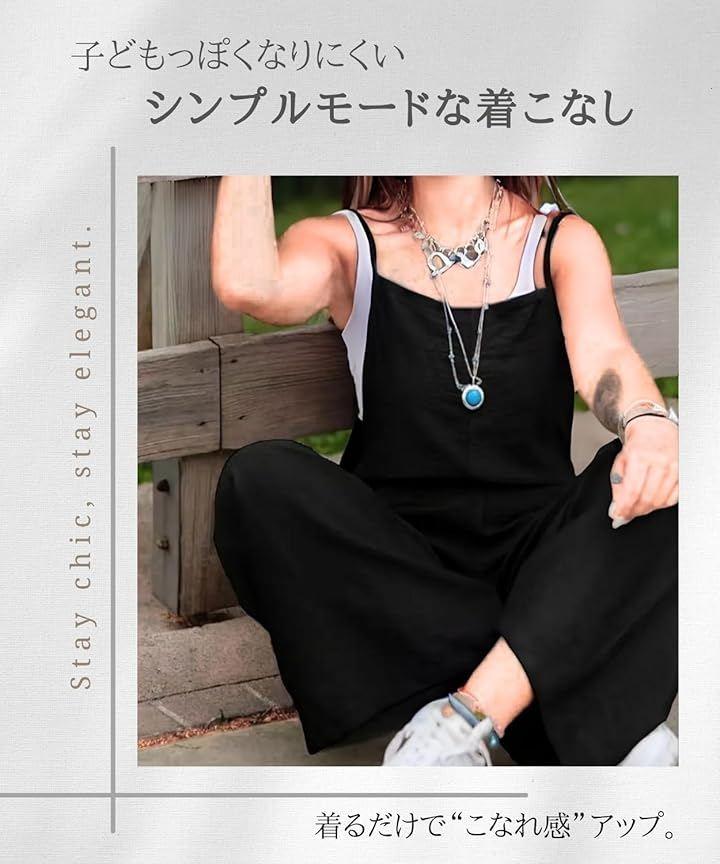 「カジュアルにもきれいめにも」 カジュアルアイテムのオールインワンサロペット、キャミソール型の華奢な肩紐が繊細で女性らしい印象を与え、あわせるアイテムを変えればきれいめで上品な印象にもなります。