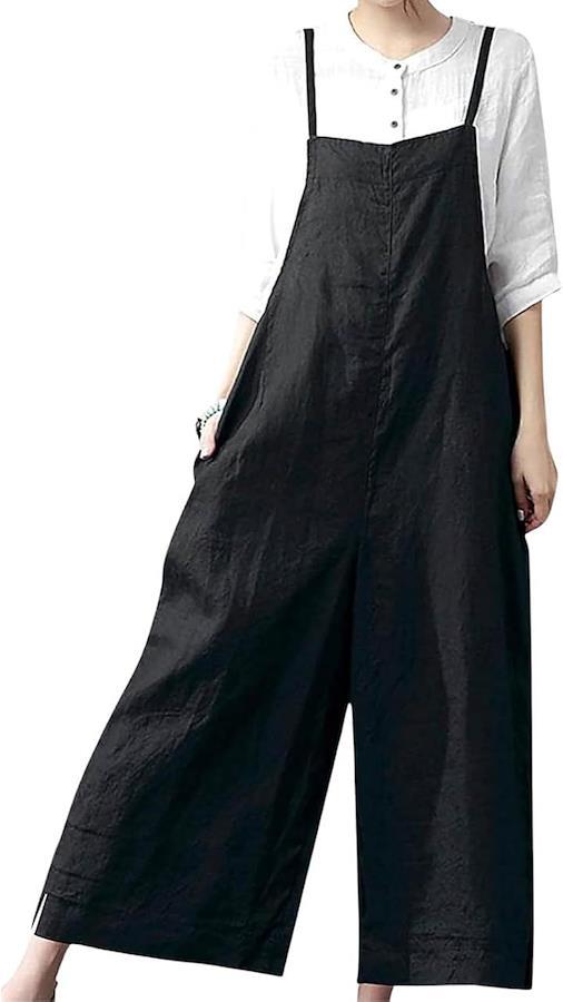 Ivory women's wide-leg jumpsuit/overalls. Comfortable and relaxed fit, made of cotton. Larger sizes available. Simple, plain, casual, and lightweight. Perfect for covering up your figure.